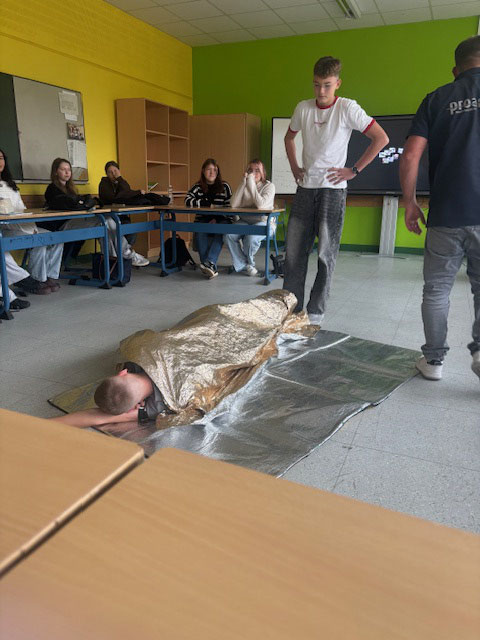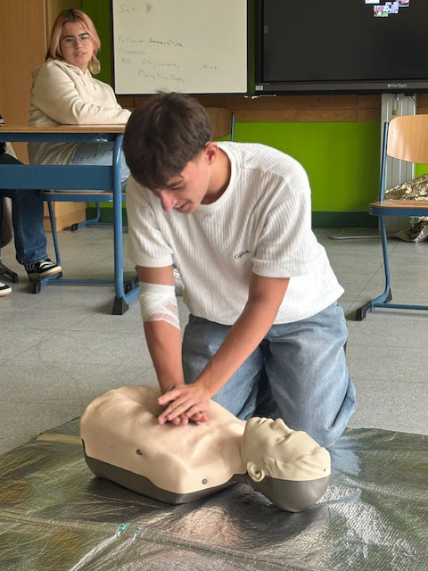 Unter der Anleitung von erfahrenen Ausbildern des Deutschen Roten Kreuzes und der Organisation Proanimo, erhielten die Jugendlichen nicht nur fundiertes Wissen, sondern auch praktische Sicherheit im Umgang mit medizinischen Notfällen. Von der stabilen Seitenlage über die korrekte Durchführung einer Herzdruckmassage bis hin zur Wundversorgung – alle zentralen Maßnahmen der Ersten Hilfe wurden theoretisch erklärt und praktisch geübt.